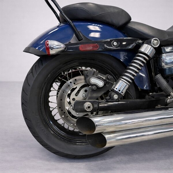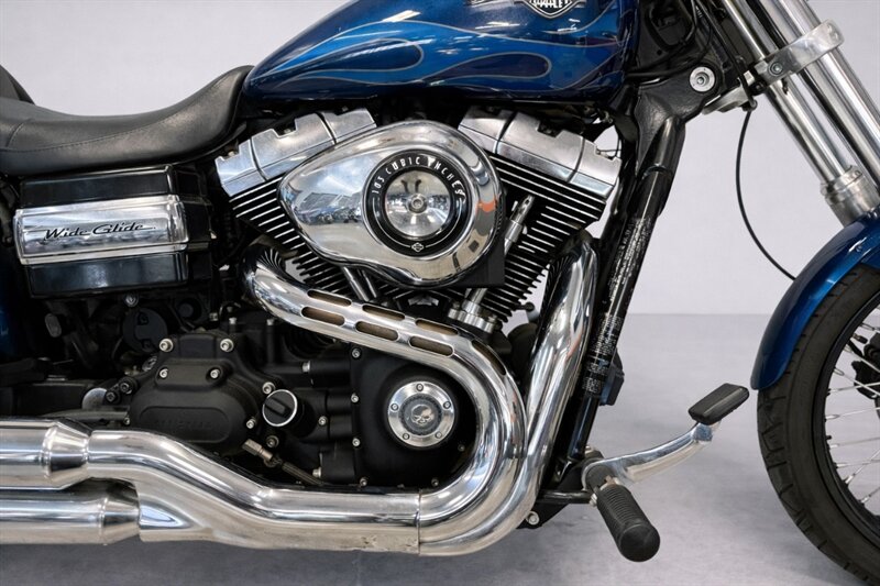The 2012 Dyna Wide Glide delivers an authentic Harley experience, powered by the robust Twin Cam 103TM engine and paired with a smooth six-speed transmission. With its raked-out front end, minimalist fender design, and black-and-chrome contrast finish, the Wide Glide brings a custom look straight from the factory. Its stretched riding stance and throaty exhaust note make every ride an event.