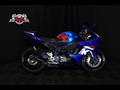 - Iconic Suzuki blue sportbike styling