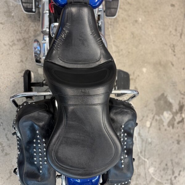 The 2015 Heritage Softail Classic captures the spirit of old-school Harley touring with modern reliability and comfort. Powered by a High Output Twin Cam 103B engine and a smooth 6-speed transmission, it delivers strong torque and effortless cruising on highways or city streets. With leather saddlebags, a detachable windshield, and full fenders, the Heritage combines the best of vintage design and long-haul functionality. It’s the perfect blend of nostalgia and everyday practicality.