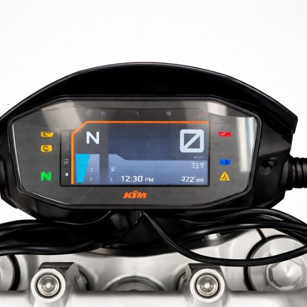 - Digital display with gear indicator, fuel gauge, and RPM readout
