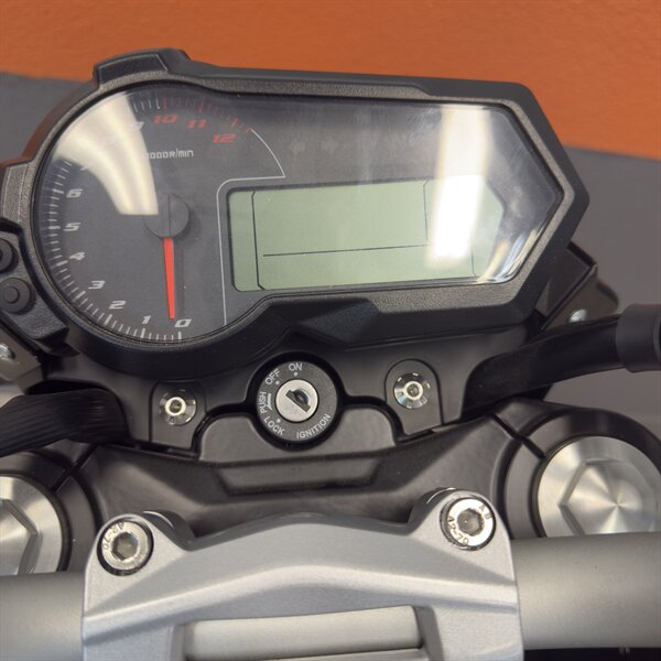 - Digital LCD instrument cluster with speed, RPM, and gear display
