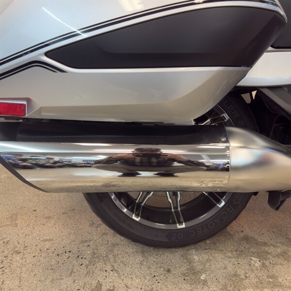 - Silver metallic finish with sleek bagger profile