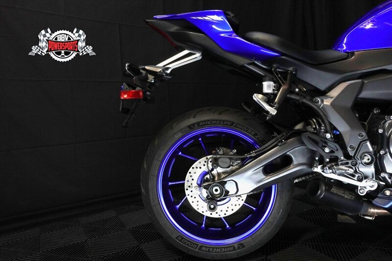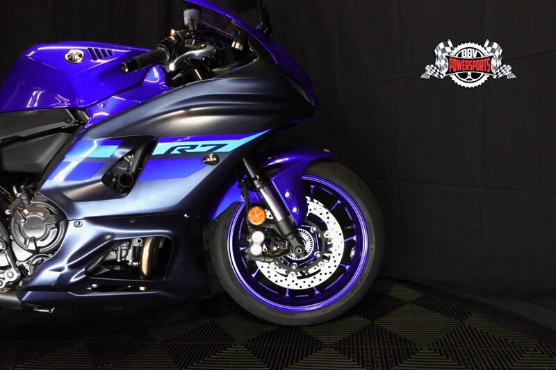 The 2024 Yamaha R7 in factory Yamaha Racing Blue, with just 3,671 miles, is now available for sale at BBV Powersports in Las Vegas. The R7 is one of the most popular middleweight sport motorcycles on the market, offering a perfect balance of power, agility, and real-world rideability. With its CP2 engine, lightweight chassis, and aggressive supersport styling, the R7 delivers thrilling performance whether you're carving canyons or commuting through the city.