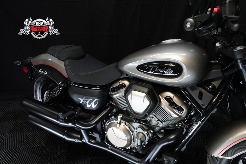 The 2025 Benda Chinchilla 500 in sleek grey, with **0 miles**, is now available for sale at BBV Powersports in Las Vegas. This brand-new modern cruiser combines classic styling with smooth, refined power delivery from its 496cc twin-cylinder engine. Designed for comfort, reliability, and everyday usability, the Chinchilla 500 is perfect for riders who want a stylish cruiser with modern performance—and it comes backed by a full 2-year factory warranty.