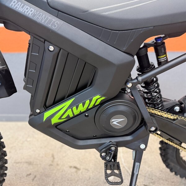 The 2025 Rawrr Mantis X in black, with 0 miles, is now available for sale at BBV Powersports in Las Vegas. The Mantis X represents Rawrr’s next leap forward in high-performance EMoto engineering, offering increased torque, improved suspension, and enhanced durability for riders who want serious off-road capability paired with lightweight electric efficiency.