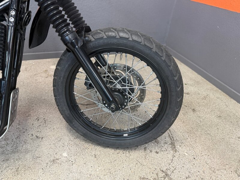 The 2016 Triumph Scrambler 900 carries forward Triumph’s storied tradition of classic design and dependable engineering. Powered by a 865cc air-cooled parallel-twin engine with a 270° firing interval, it produces smooth, torquey power with a distinctive exhaust note. High-mounted pipes, spoked wheels, and dual-purpose tires highlight its adventurous DNA. Whether carving through city streets or exploring dirt trails, this Scrambler delivers a perfect mix of style, control, and excitement.